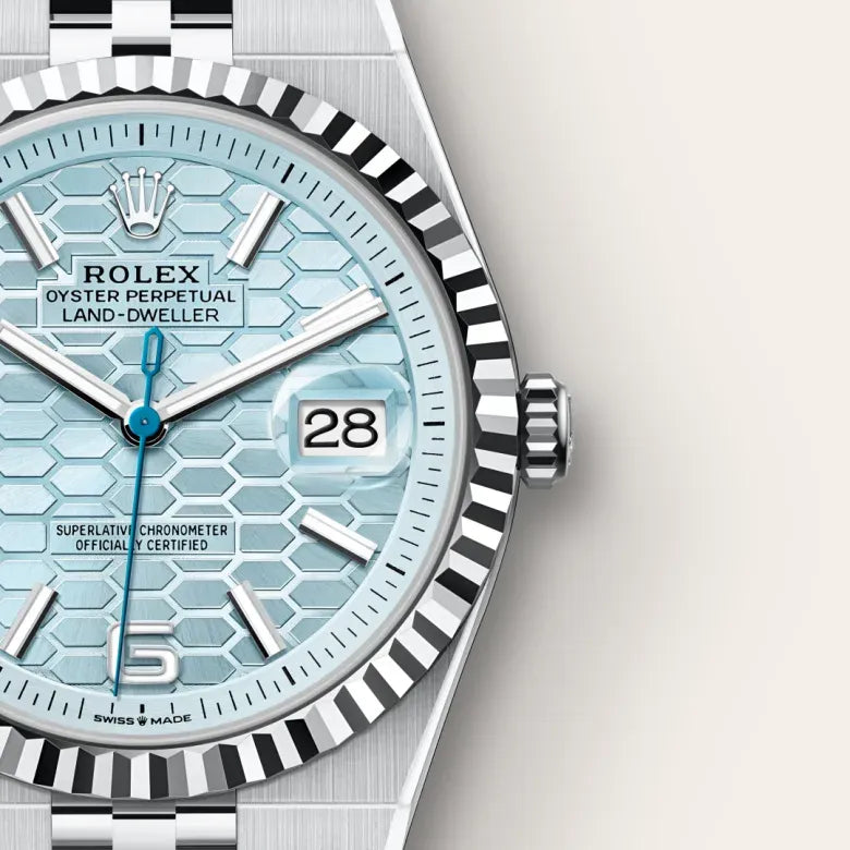 Certified as a Superlative Chronometer, the Land-Dweller upholds Rolex’s highest standards in accuracy, robustness, and reliability. Each model is tested in-house beyond COSC specifications, ensuring a precision rate of −2/+2 seconds per day. From the femtosecond-laser-etched dial to the patented ceramic bracelet inserts, the Land-Dweller embodies Rolex’s commitment to refining every element of watchmaking.